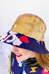 - Package content Gabardine jumpsuit with full color print and sequin inserts, panama hat in the color of the jumpsuit.