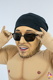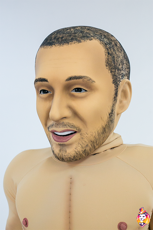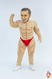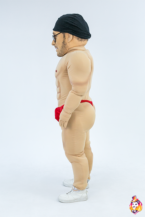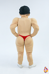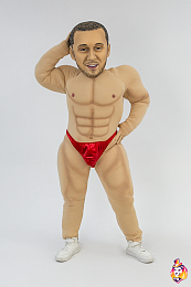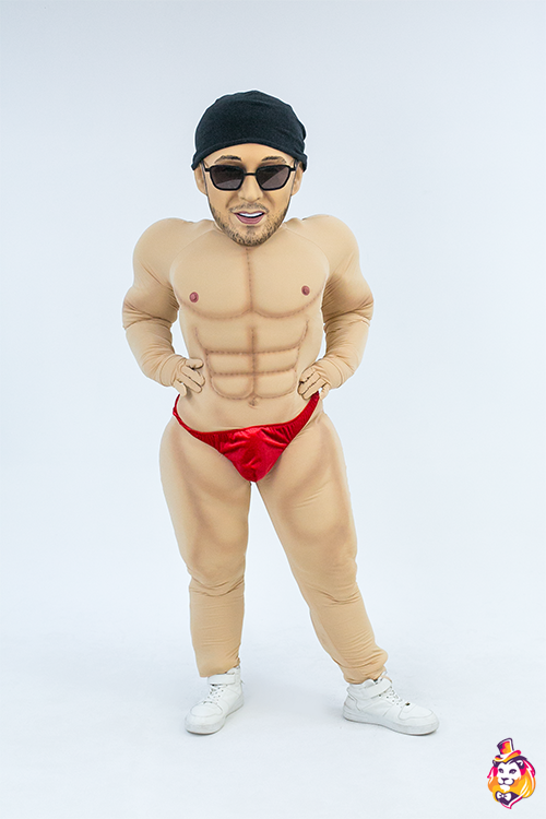 - Package content Mascot head: 3D mask covered with a biflex, an anatomical helmet inside, a viewing area in the mouth, no additional ventilation holes, hair from wig. A body with anatomical features - a muscular system; underwear (panties), a pair of gloves made of biflex.