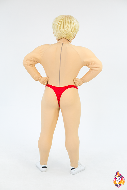 - Package content The head is a 3D mask covered with a biflex, an anatomical helmet inside, an observation area in the eyes, additional.ventilation holes in the mouth and nose, artificial hair. A body with well-developed anatomical features - a muscular system; underwear (panties), a pair of gloves made of biflex.