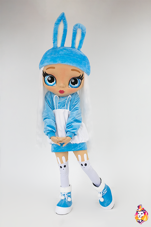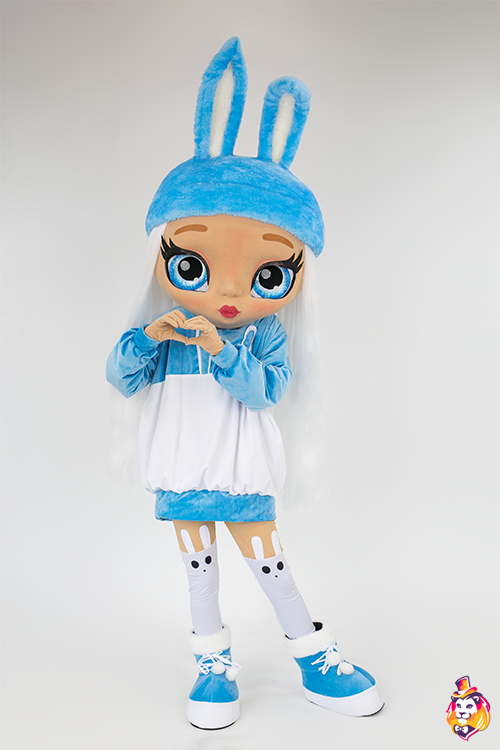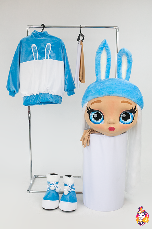 - Country of manufacture Doll Bunny mascot costume is a character who will become the star of any party or promotional event. Our mascots attract attention from afar, people always want to take pictures with them and post photos on social networks.
