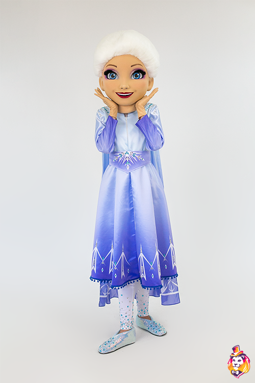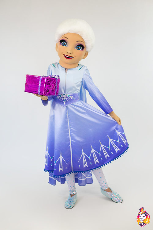 - Package content Ice Princess Mascot Costume is a memorable character who will delight the public at events and promotions. Our mascots attract attention from afar, people always want to take pictures with them and share photos with friends. Animators, advertising agencies and other companies choose our mascots for convenience in work and high-quality of costumes. On our production Carnival Mascot it is convenient to order and buy any mascot costume, all the ideas of the customer will be fulfilled. We produce branded mascots in branded colors with a logo and symbols. At the request of the customer, we can add animatronics - the mascot will be as alive and will be able, for example, to wink and open its mouth. Our products are made of modern eco friendly materials, durable and convenient to use. There may be slight differences from the image, since each product is made individually! This product requires permission from the copyright holder. Package contents: Head - 3D mask covered with a biflex, mesh eyes, viewing area in the eyes, additional ventilation hole in the nose, fur hair. Body - zipper dress with a satin train with a full-color print; a white, translucent mesh turtleneck; leggings; a pair of gloves; a pair of shoes.