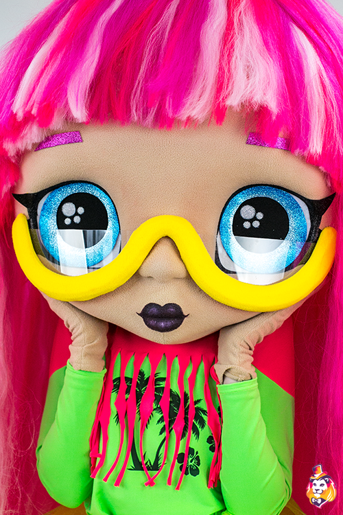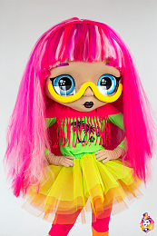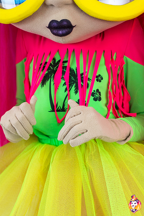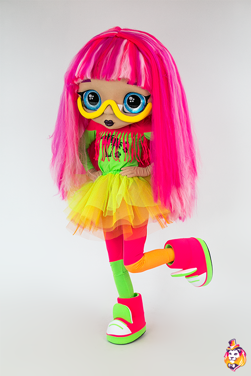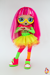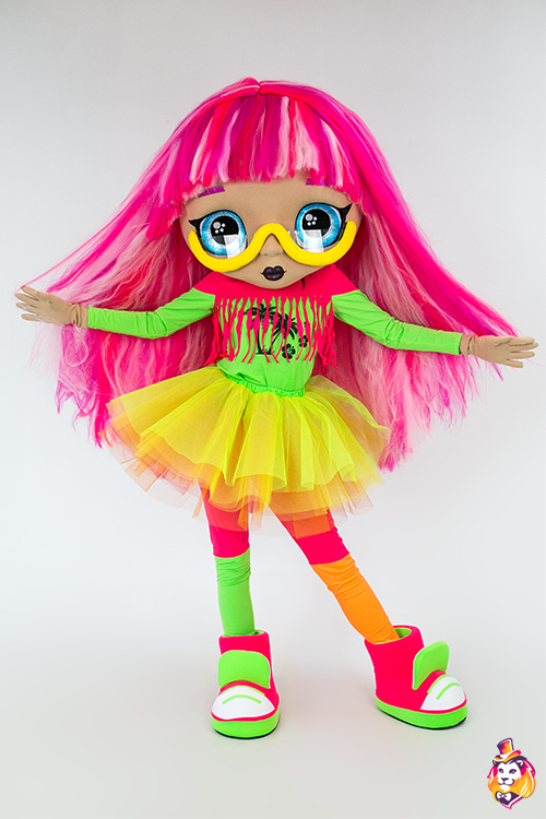 - Package content Doll Neon Mascot Costume is a memorable character who will delight the public at events and promotions. Our mascots attract attention from afar, people always want to take pictures with them and share photos with friends. Animators, advertising agencies and other companies choose our mascots for convenience in work and high-quality of costumes. On our production Carnival Mascot it is convenient to order and buy any mascot costume, all the ideas of the customer will be fulfilled. We produce branded mascots in branded colors with a logo and symbols. At the request of the customer, we can add animatronics - the mascot will be as alive and will be able, for example, to wink and open its mouth. Our products are made of modern eco friendly materials, durable and convenient to use. There may be slight differences from the image, since each product is made individually! Package contents: Head - 3D mask on a foam rubber frame, covered with fleece, mesh eyes, viewing area in the eyes, kanekalon hair. Body - turtleneck, tulle skirt, leggings. A pair of gloves, a pair of shoes (foam rubber frame, covered with fabric, on a polyurethane sole).