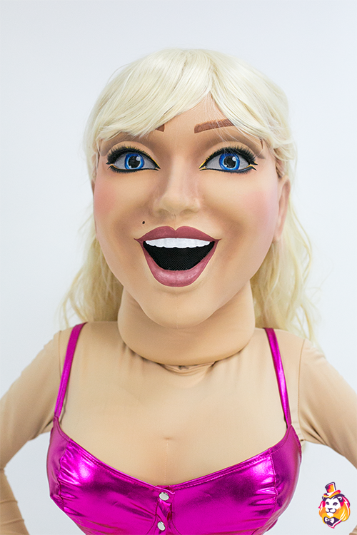 - Package content Head - 3D mask and foam frame covered with supplex, viewing area in the mouth, add. no ventilation holes, artificial hair. Torso - body with details