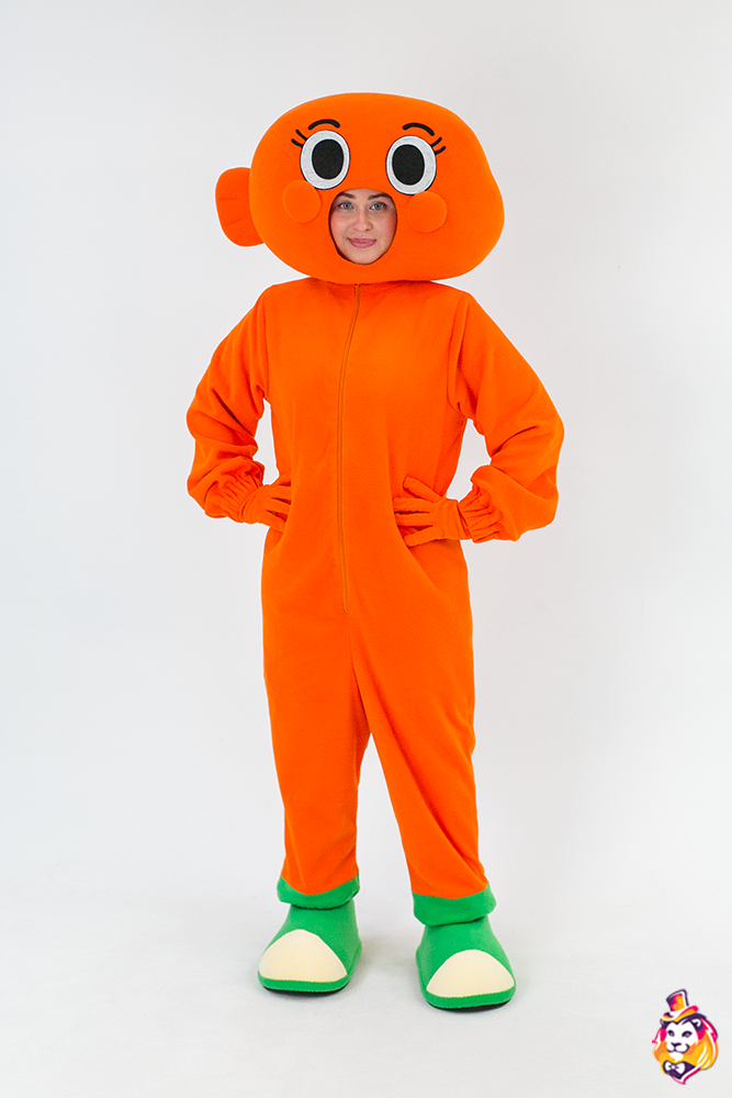 - Package content Carnival costume Orange fish is a memorable image at the most fun and fabulous events. The festive outfit looks bright and stylish, while it does not restrict movement. In the Orange fish carnival costume, you will definitely attract the attention of the public and be the center of attention! On our production Carnival Mascot it is convenient to order and buy any carnival costume, all the ideas of the customer will be fulfilled. We produce branded carnival costumes in branded colors with a logo and symbols. Our products are made of modern eco friendly materials, durable and convenient to use. There may be slight differences from the image, since each product is made individually! Package content: Open-face headgear (foam frame covered with fabric), overalls, a pair of gloves, a pair of shoes (foam frame covered with fabric, with polyurethane soles)