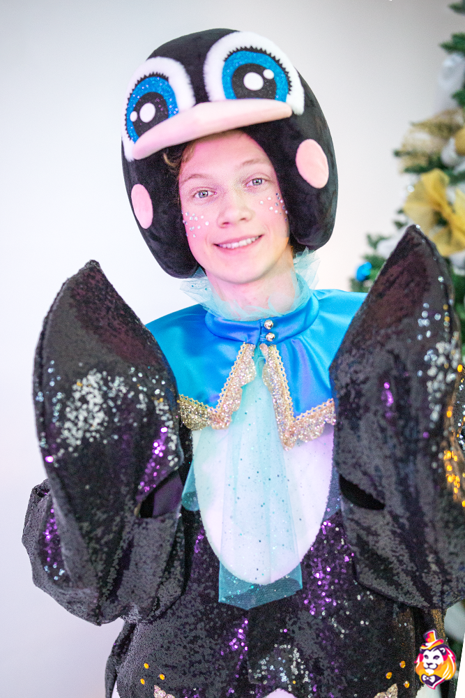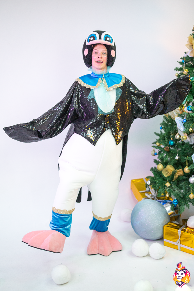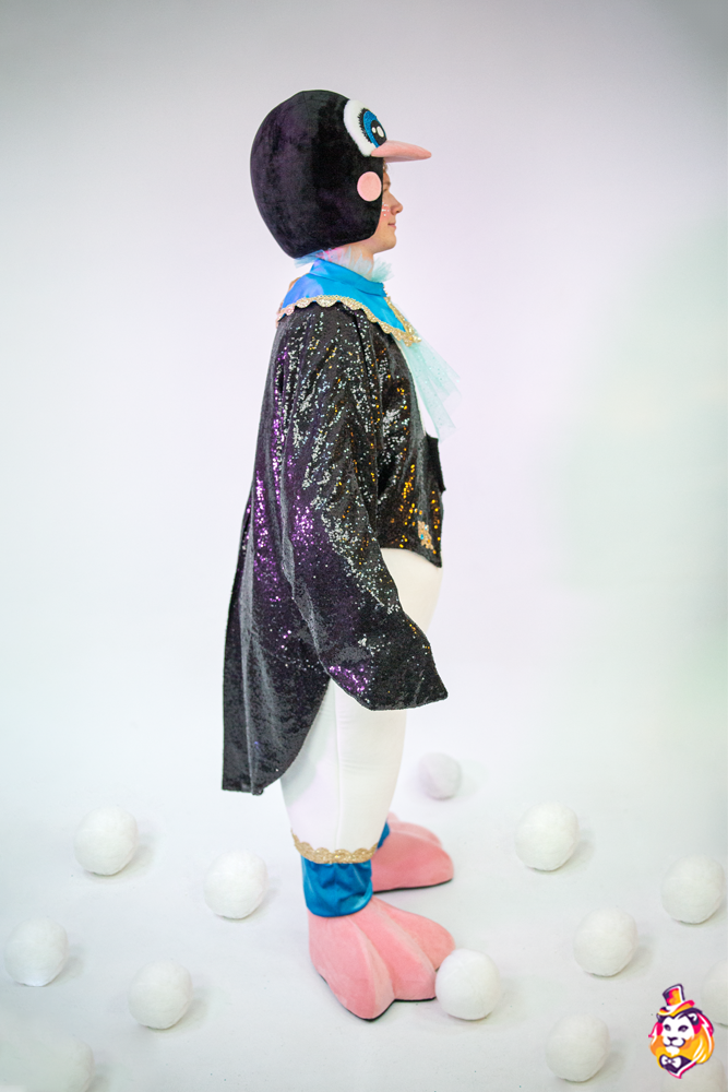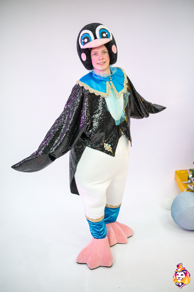 - Package content Carnival costume Penguin Boy is a memorable image at the most fun and fabulous events. The festive outfit looks bright and stylish, while it does not restrict movement. In the Penguin Boy carnival costume, you will definitely attract the attention of the public and be the center of attention! On our production Carnival Mascot it is convenient to order and buy any carnival costume, all the ideas of the customer will be fulfilled. We produce branded carnival costumes in branded colors with a logo and symbols. Our products are made of modern eco friendly materials, durable and convenient to use. There may be slight differences from the image, since each product is made individually! Package content: Headdress, overalls, tailcoat, collar, gloves, shoes (foam frame covered with fabric, on polyurethane soles)