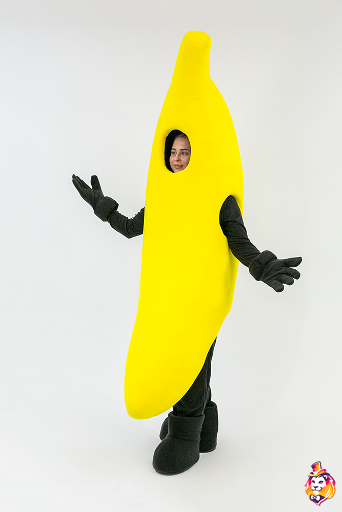 - Package content Carnival costume Banana is a memorable image at the most fun and fabulous events. The festive outfit looks bright and stylish, while it does not restrict movement. In the Banana carnival costume, you will definitely attract the attention of the public and be the center of attention! On our production Carnival Mascot it is convenient to order and buy any carnival costume, all the ideas of the customer will be fulfilled. We produce branded carnival costumes in branded colors with a logo and symbols. Our products are made of modern eco friendly materials, durable and convenient to use. There may be slight differences from the image, since each product is made individually! Package content: Izolon frame in the shape of a banana, covered with fabric; turtleneck and pants for the animator; a pair of gloves, a pair of shoes (foam frame, covered with fabric, on a polyurethane sole)